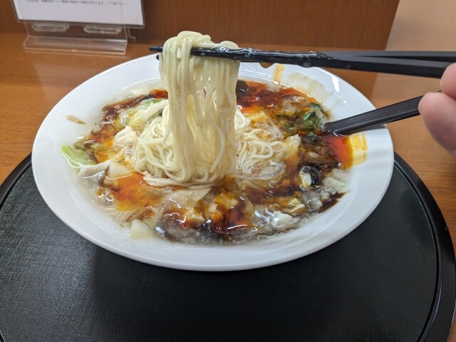 アッサリ旨味のあるスープに、絶妙の塩加減の餡。アッツアッツで麺をすするのが大変ですw。