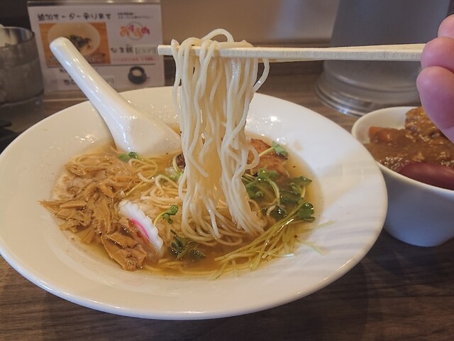 ここ「なると家」さんは「塩」が推しのお店です。旨味の濃い塩スープに炙りチャーシューのこおばしい香り・風味も加わってウマい♪パッツン系の細ストレート麺も私好み♪。ぷりぷりとぅるとぅるのワンタンも全部うまい♪♪