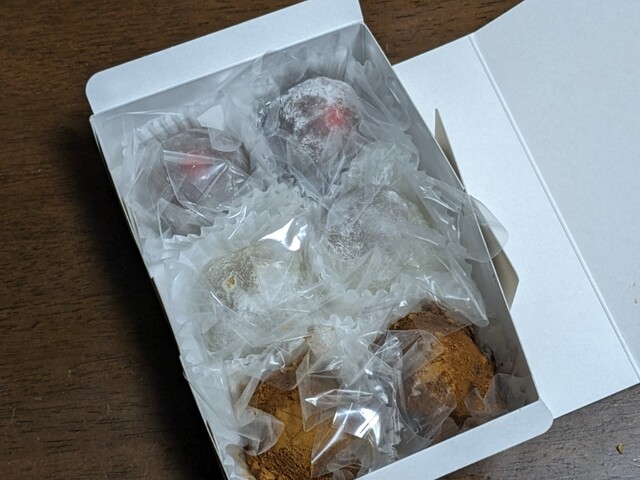 14:00を過ぎていたためでしょう。購入できるものは「わらびもち」だけでした。それを小箱で3箱買って帰りました。