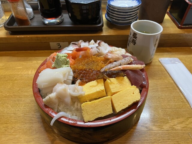 ランチメニューのまんぷくちらしはご飯の量を少なめとか大盛り(大盛料金がかかります)が出来ますので、各自無駄の出ないようにご注文いただけると幸いです。