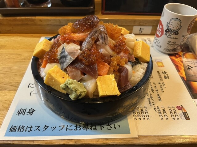 特大まかないちらし(ご飯3合)3300円 ご希望でご飯少なめや大盛りも出来ます。