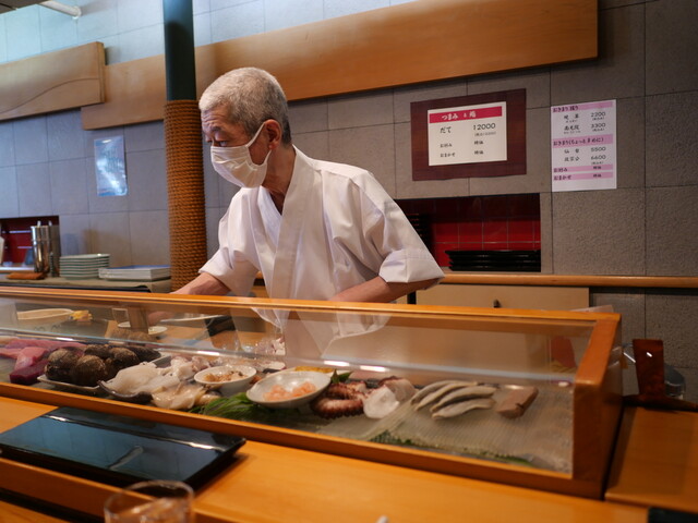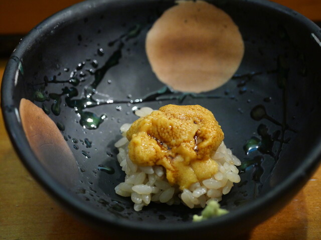 なんとか予約が取れ、ほぼ一年ぶりの訪問です。一晩昆布締めした甘海老、イカは柚子の効いた塩で、ホッキ貝は少しだけ炙ってこれも塩で、前日から水分を吸収して甘みを濃くした雲丹は軍艦でない分その味の濃さがはっきりと判ります、アカムツいわゆるのどぐろは濃厚な味わい、穴子も塩で握ってありホロホロと口の中で崩れる食感は、自分の知らない美味しい食べ方を余裕で見せてくれました。秀逸な素材を使うことは勿論、美味しくするための気が遠くなる手間をしてくれる繊細なお仕事、自分の誕生日に妻からの最高のプレゼントをいただきました。幸せな時間をありがとうございます、ご馳走様でした。