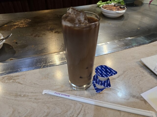目の前で焼いて頂けるハンバーグも大海老フライもボリュームがあり それらにつけるソースも美味
