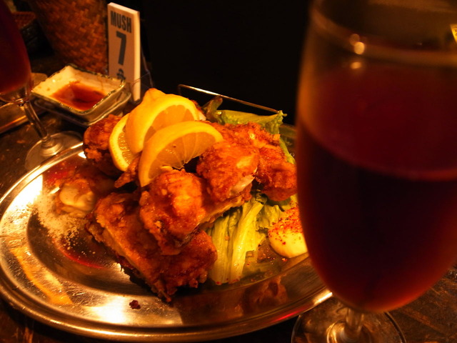 俺の唐揚げ(笑)。トリュフの塩もいいね。ロゼワインと合わせて。