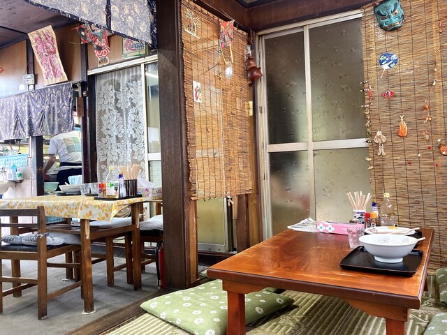 一番奥の小上がり座敷に座り「わんたん麺」「中華そば」