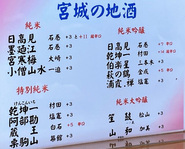 宮城の酒メニュー