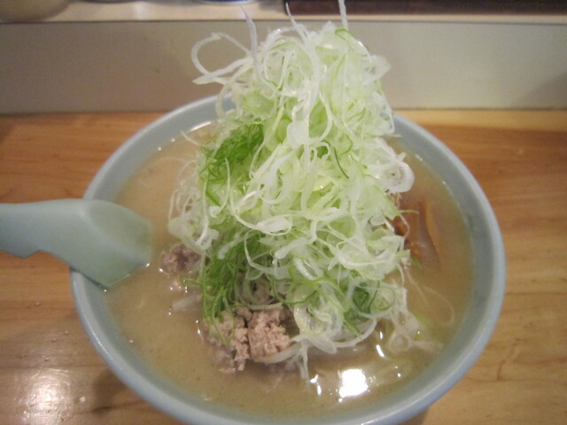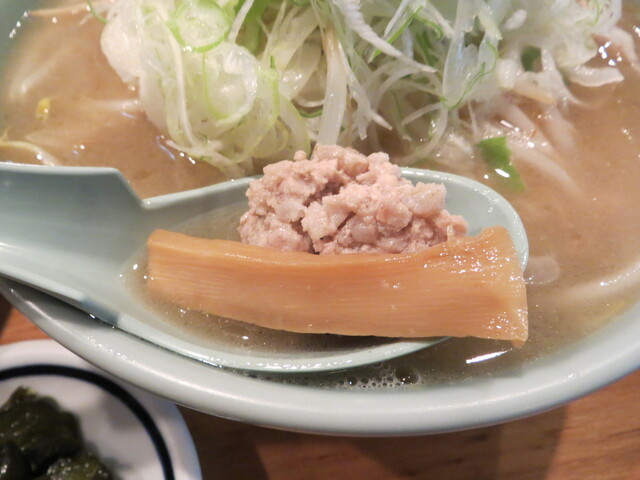 具材は挽肉、メンマ、野菜炒め、ネギ