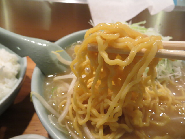 そして、麺を食べますがいつものごとく少し固めの茹で上がりで昔ながらの札幌ラーメンですね。