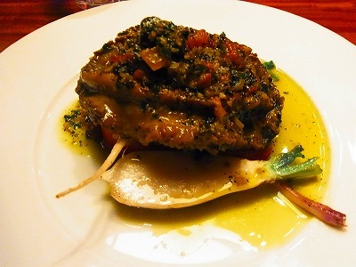 弾力があり、肝のソースとガーリック香りがベストマッチ!