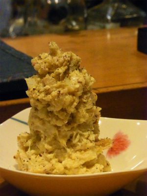 いきなりのタワー盛りのポテトサラダに、びっくり!