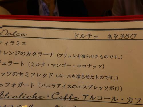 まだおしゃべりしたいから、デザート行く?ってことでメニューを見せて頂きました。