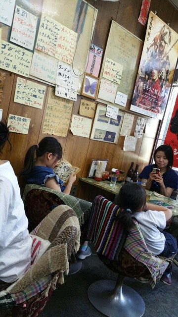 お店の奥には本棚があり、古いマンガが並べられています。料理が出るまで楽しみましょう。