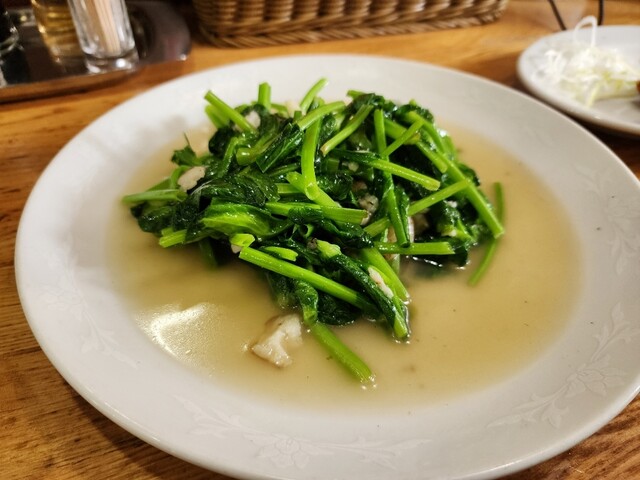 青菜炒めは塩味控えめです。