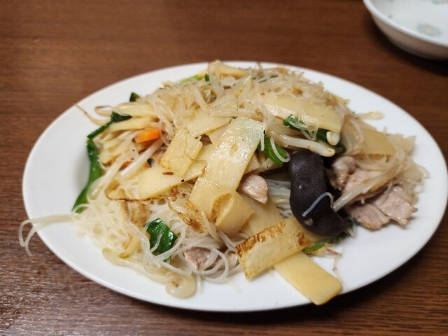 チャーハンはネギと玉子だけのシンプル具材でパラパラスタイル。焼きビーフンの具は、筍、もやし、韮、木耳とチャーシューで味付けは優しい塩味でした。