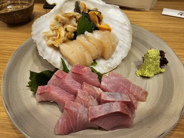 お酒は、お隣の方が召し上がられていた日本酒を皮切りに数種類いただきましたが、どれと魚介類に合います。美味しいのでどれも少し飲み過ぎたかもしれません。
