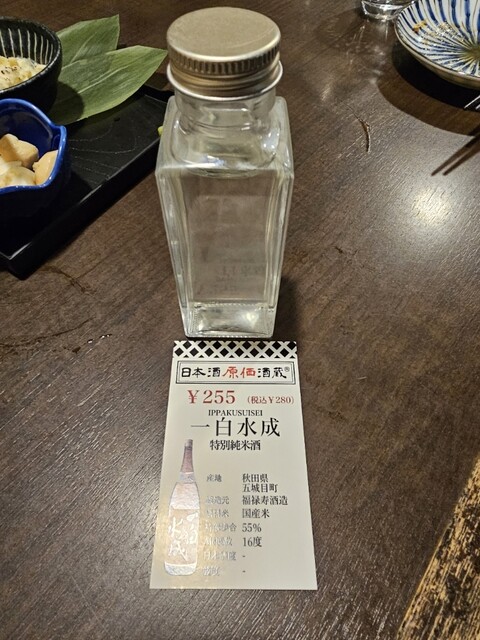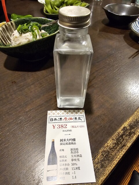 日本酒を提供していただいたときに見たボトルは、見覚えのある小さな角瓶。かなり前にですが、東京で美味しい日本酒を飲んだお店の支店であることがわかりました。期待は高まります。