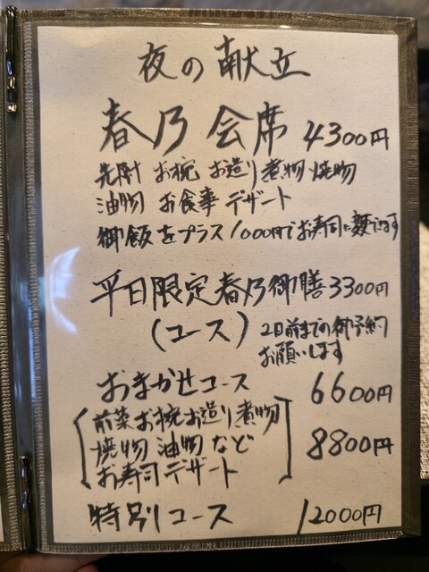 ランチメニューは、前日予約のものを除くと計3種類。春乃ランチ(2,200円)を注文。