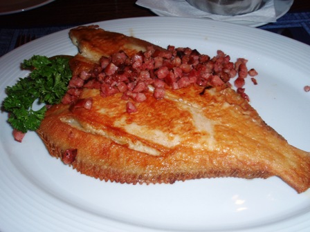 ドイツの魚料理ってどうなの?kutterscholle というジャンル料理がおすすめ。ドイツ北部としたら絶対にコレ!カレイをバターとベーコンでソテーしたもので表面はカリッとしており、バターとベーコンの味がしっかりしみついて塩味がなんとも絶妙。