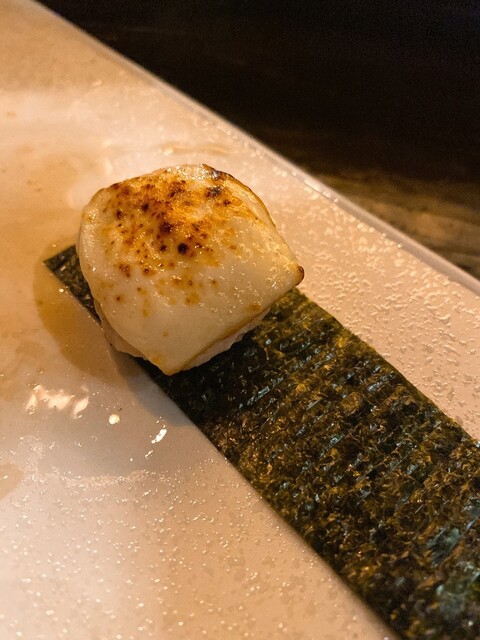 南部鉄器の鉄鍋で店主が焼いてくれ、食べ頃を
