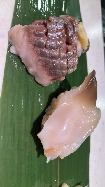 赤イカ山わさび、赤イカゆず塩、へべす〆さば、炙りにしん、〆さば、真イカ山内ニラ軍艦、炙りサーモン醤油、紅鮭のめふんぐんかん、活北寄貝、紅鮭筋子醤油漬け、生ビール、ガリをお代わりしました。