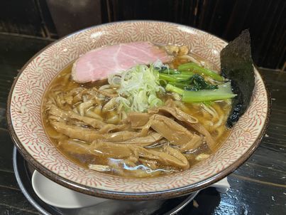 友人の中華そばの麵は少し平打ちでピロピロしていておいしそう。