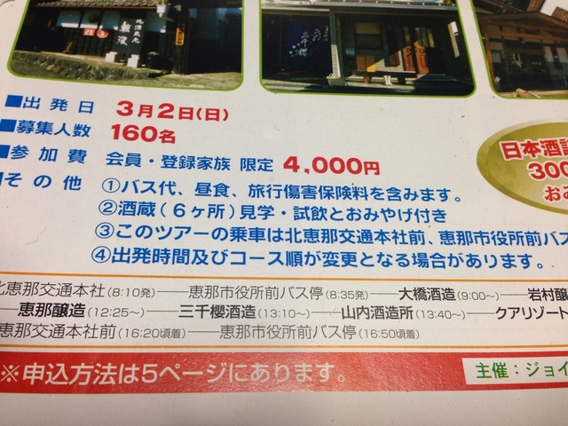 中津・恵那の酒蔵めぐり、ジョイセブンのバスツアー (2014/03/02)
