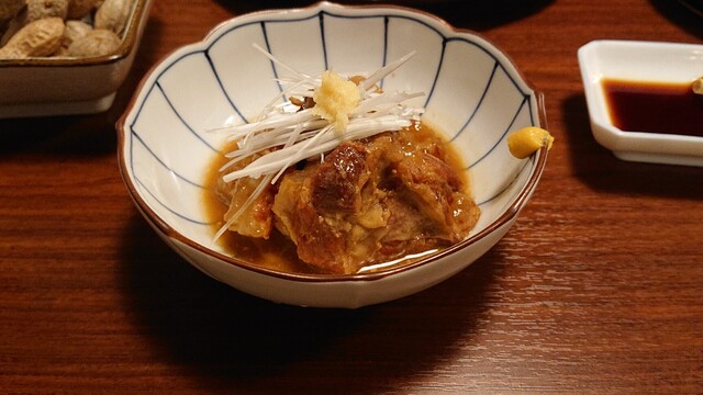 そして地鶏の刺身と続きます。地鶏の刺身を食べれるとこは東京だと貴重ですね。きびなごのお刺身よりこっちの方が好みです。