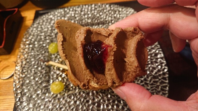 申し分のない出来具合です。そんな中テンションが上がる一品、鳥のレバーペーストがきます。このお店で一番好きな料理だから、少しずつ味わって食べます。う~ん美味い!