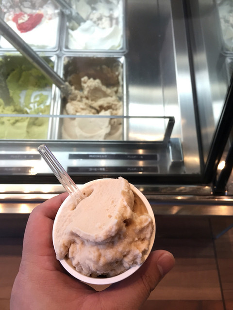 口に入れて、舌にのせた時に感じる、小さな粒?みたいな感触が、ミルクの味を最大限に出していて、なかなか高級なジェラートや!!