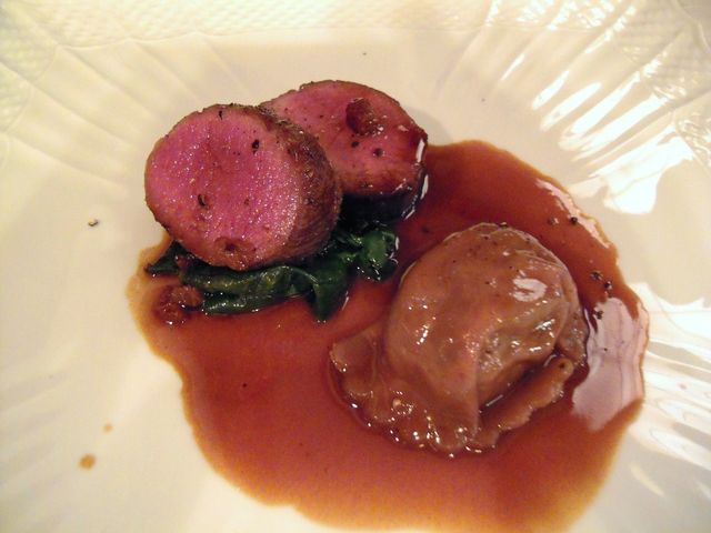 マロンのラヴィオリで包んだそのバラ肉のラグー、コニャックとマデラ酒の香り