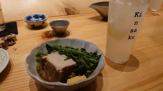 刺し盛、大きなカマ焼、炒り銀杏、味しみ大根と厚揚げに春菊、人参と玉葱のドレッシング(秀逸!)が乗った牛タタキを堪能、だめ押しはふわふわに握られたおむすび(写真忘れた…)で〆。