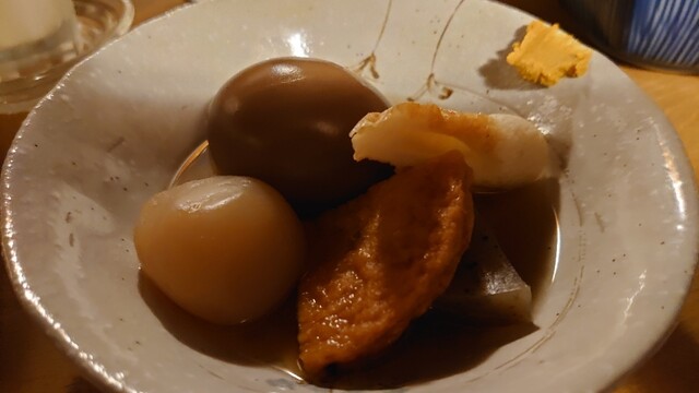 本日のラインナップはなまこと鮟肝、山形直送冷奴、刺し身、おでん(最後は味噌汁とのチョイス、後ろ髪を引かれております)