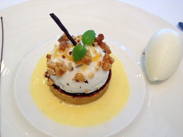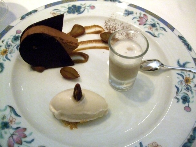 ウイスキーの香るマロンのコンフィとショコラのムース ペカンナッツのアイスクリーム