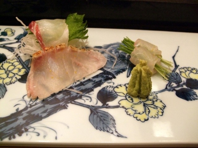 つきだし、煮物(とこぶし・あんきも・たこ・たけのこ)、造り(ひらめ・くえ・たい、かつお)。