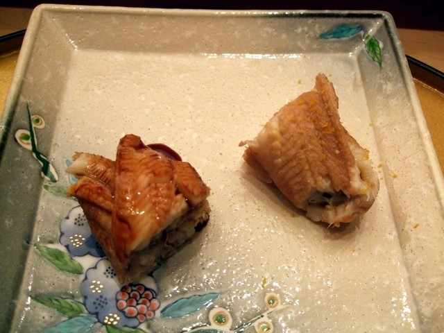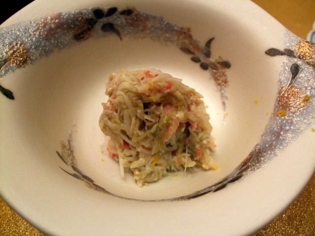 かに(カニ味噌和え)、うなぎ(?)の稚魚、白子焼きでひと段落。