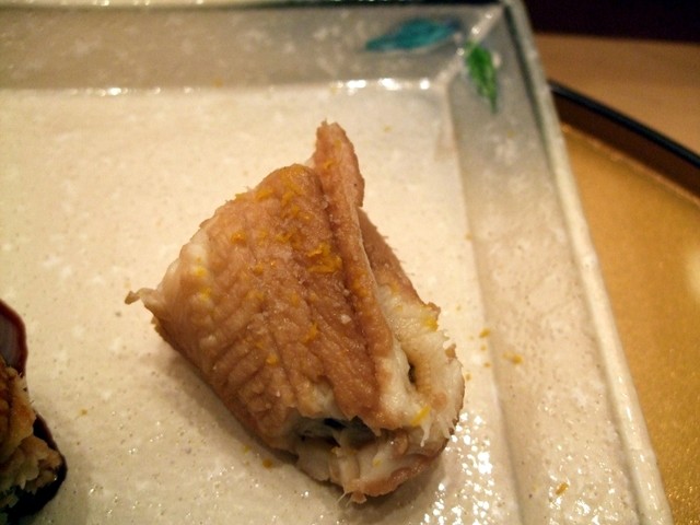あまだい、かつお、とろ、せきさば、とりがい、あじ、かつお、うに、あぶりとろ、あなご(塩、たれ)。