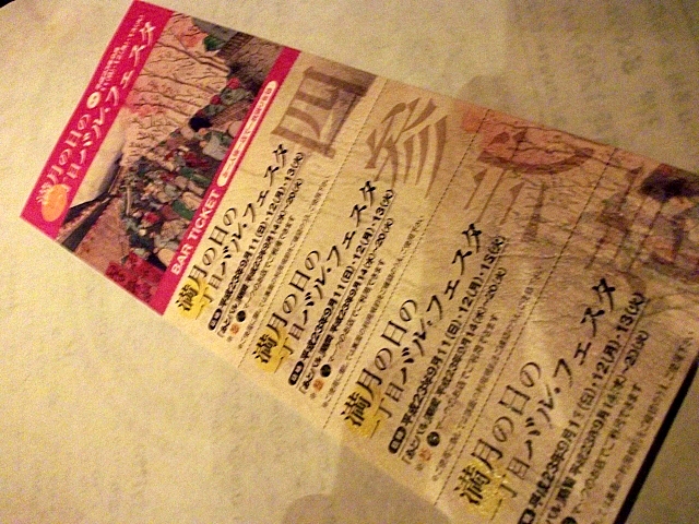 満月の日の一丁目バルフェスタのチケットを購入もフェスタには参加できず、金券として使用。