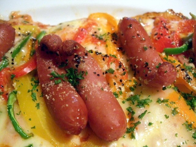 ピザは名前の通り、ソーセージとパプリカのピザ。