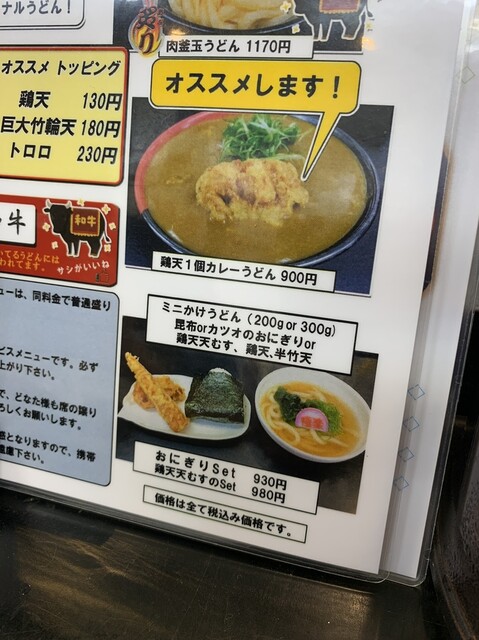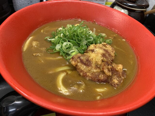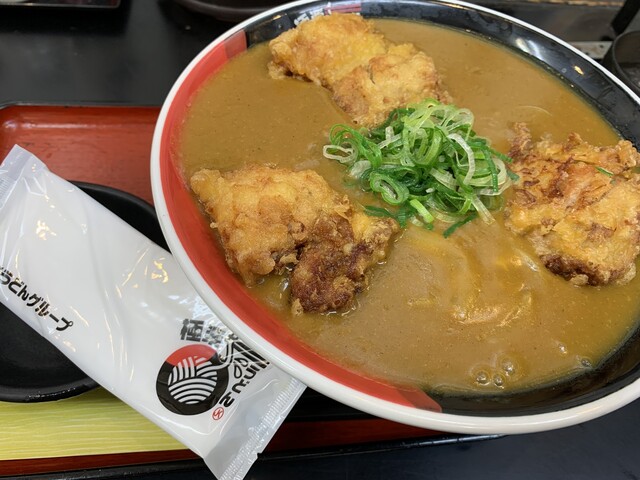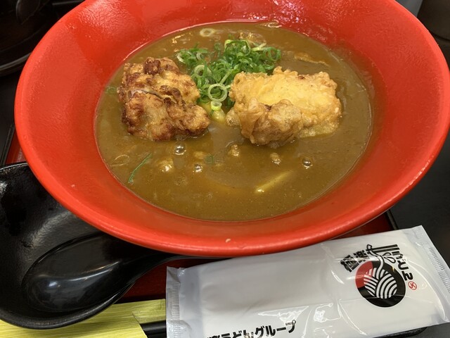 おいしいカレーうどん(普通)・鶏天トッピング2個