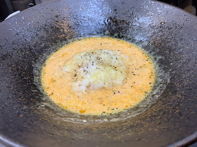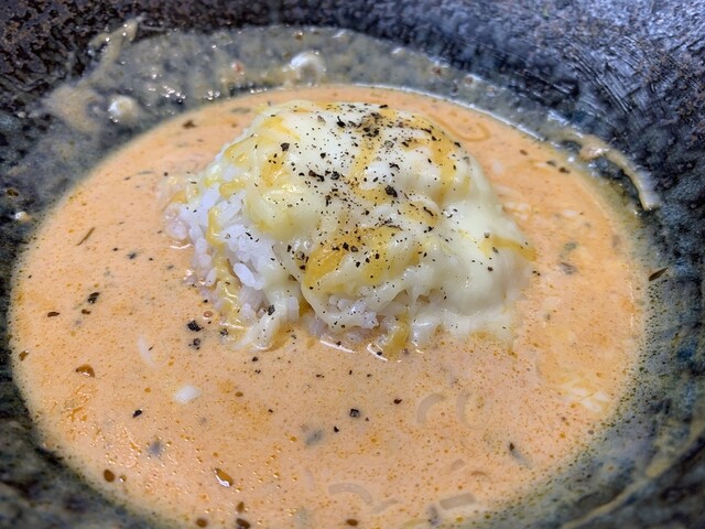 〆にちょこっとご飯をダイブさせて、ミニ麻婆丼を楽しむ。