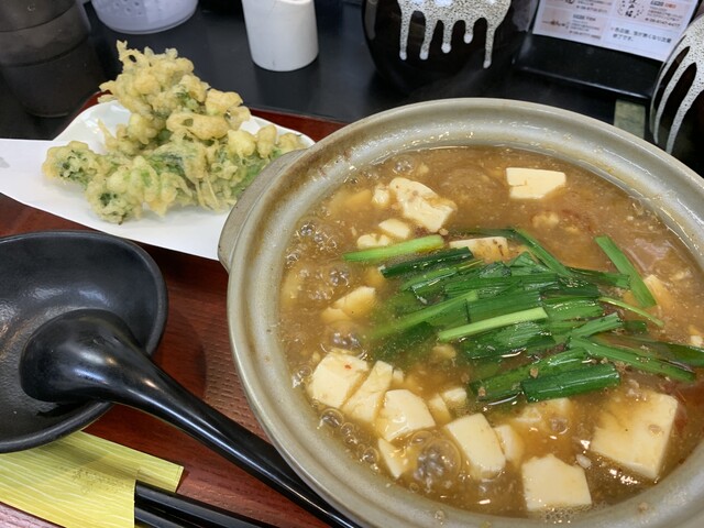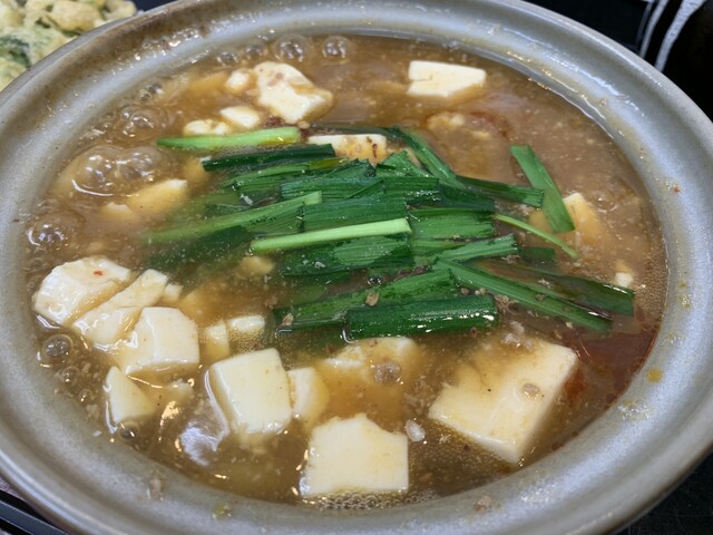 鍋焼き麻婆豆腐うどん(ちょっと〆ご飯付き)