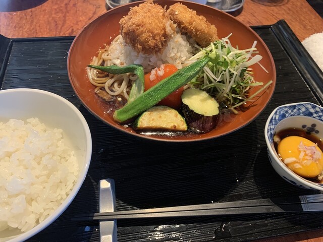 おろしそばに、ごはん、更には卵黄醤油と贅沢な定食に仕上げられています。