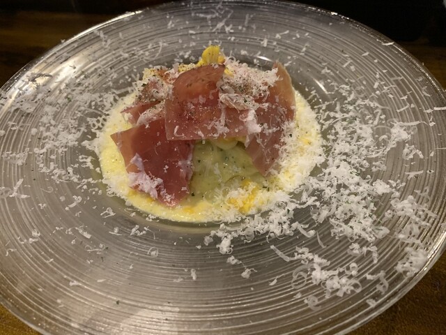 コーンの甘み、パルミジャーノと生ハムの塩っ気がカッペリーニに見事に絡み、