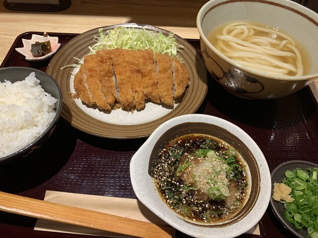 肉釜玉うどん(¥1300)・味彩豚のミニカツ丼(¥550)