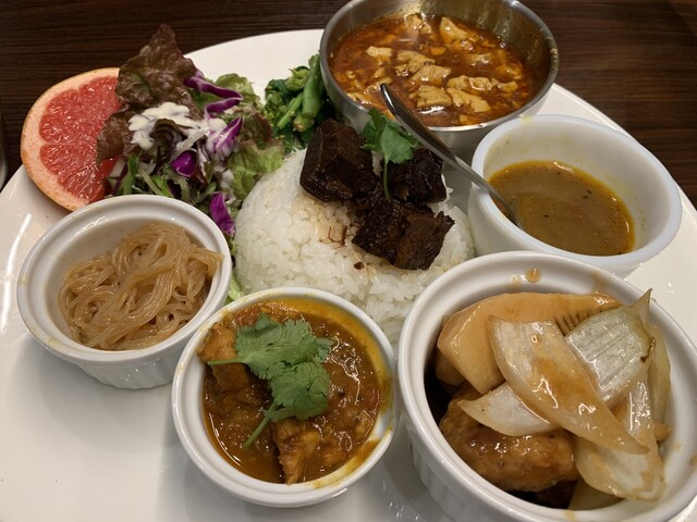 (海老天)と四川麻婆豆腐カリィのあいがけ
