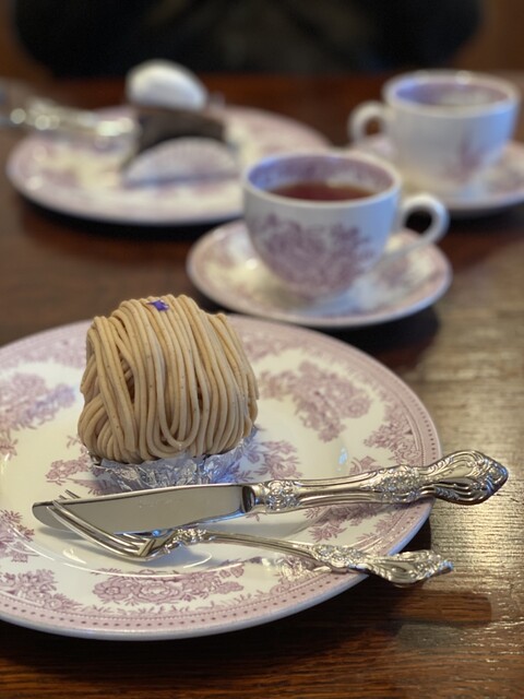 念願のモンブランは、シャインマスカットがコロコロ入っている、土台はメレンゲクッキー、生クリームがくどくなく、こんな田舎に、こんなスペシャリティなケーキがあるなんて、驚き。