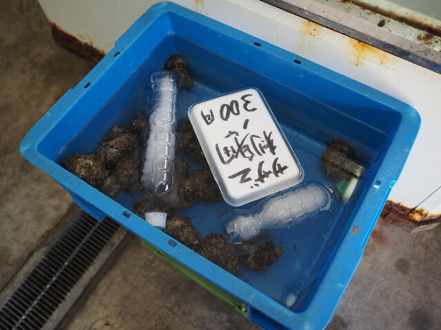 生け簀から取りだした活アワビは元気いっぱい新鮮そのもの