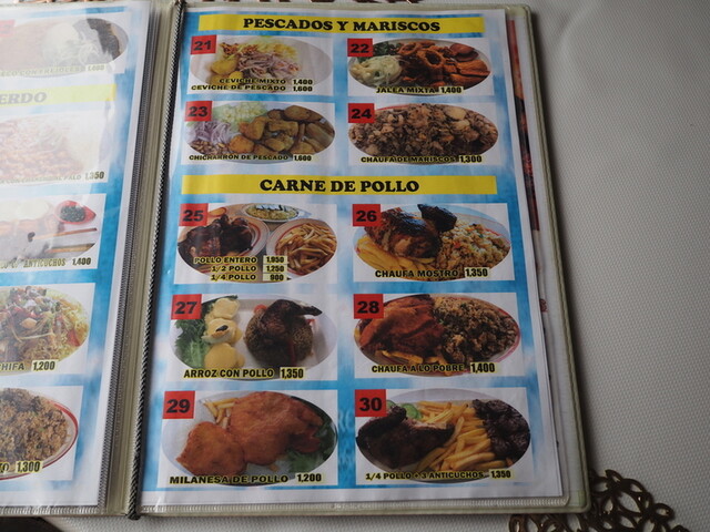 メニューはスペイン語オンリーですが写真付きです。