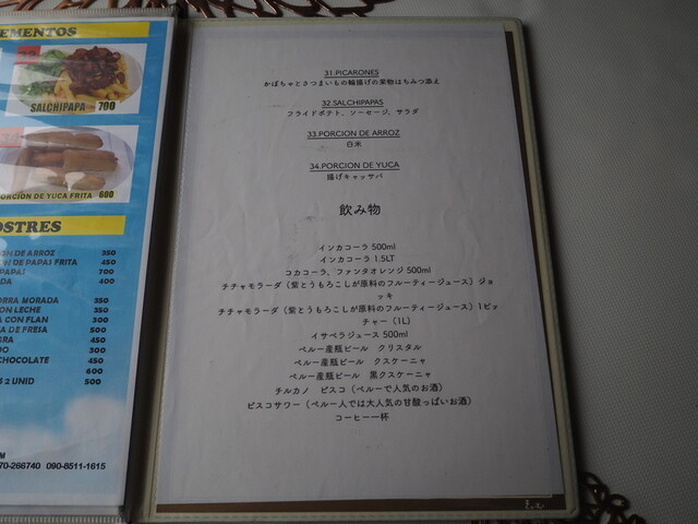 今までのスペイン語メニューの隣のページに日本語の説明が付きました。