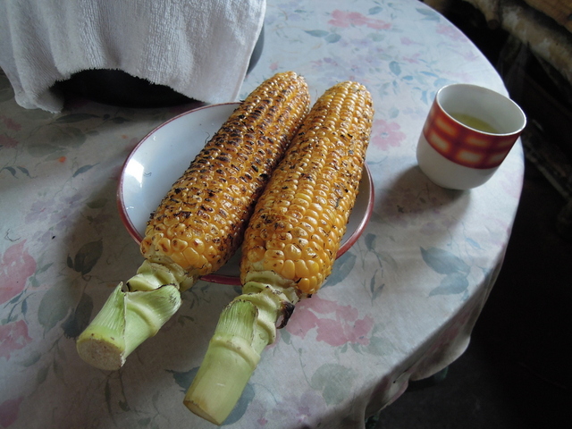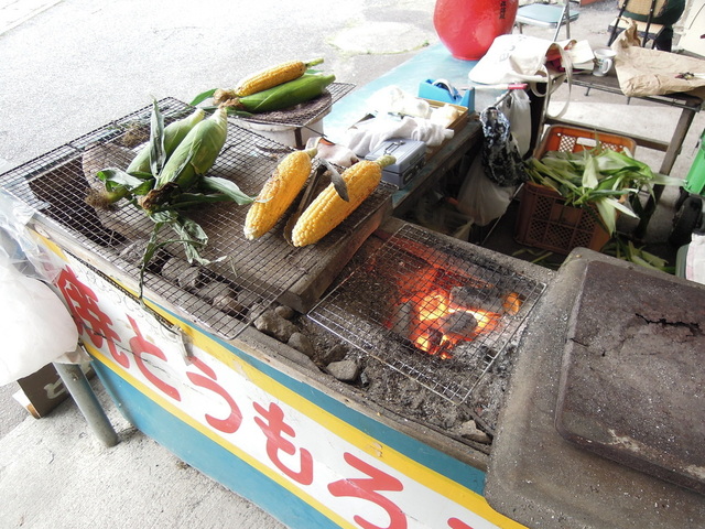 お邪魔した店は朝採れのもろこしを生のまま炭火で焼いてくれます。